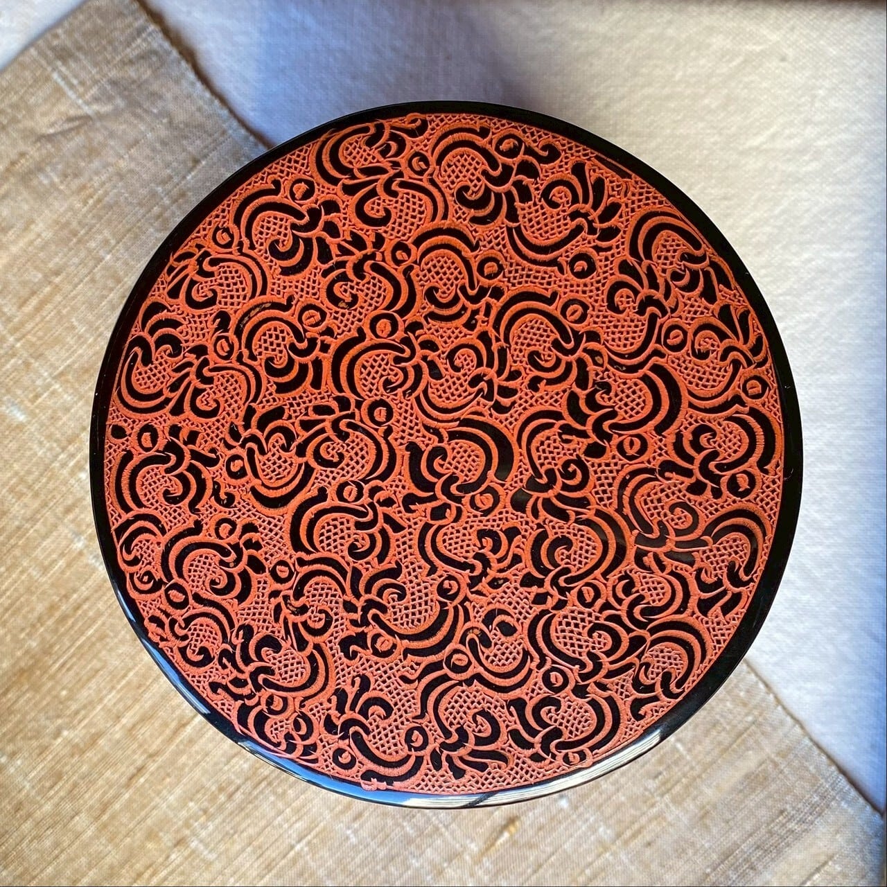 • バガンの漆器 円形トレイ高台付き16 No.2 バガンの漆器 円形トレイ高台付き16 No.2 ¥8,800
