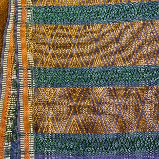 かつて、教員や牧師を務めていたポーマナーさん(男性)が中心となり、近隣の女性たちと一緒にこの織物作りに取り組んでいました。一時期は地域で藍を育て、草木染めにも挑戦しました。比較的若い人々が中心となり、お金のためだけではない織物作りがつい数年前まで行われていました。