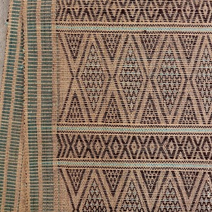 ミャンマー西北部、ラカイン州のミンビャーから、さらに奥地へボートで入った場所で暮らすソントゥ族(一部レイトゥ族)の方たちが織った織物で、腰機(こしばた)で織られています。(ソントゥ族はチン族の一部族です)