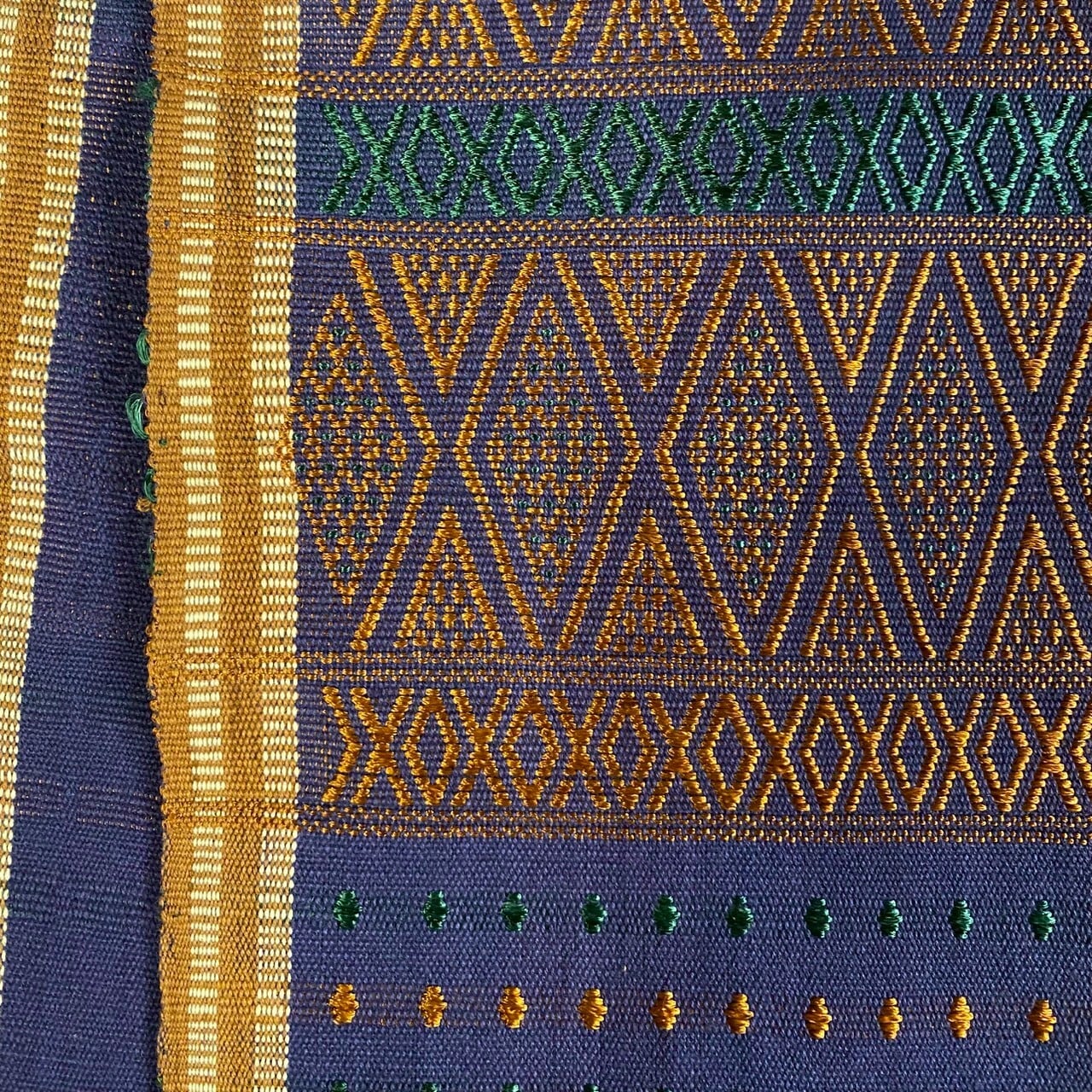 かつて、教員や牧師を務めていたポーマナーさん(男性)が中心となり、近隣の女性たちと一緒にこの織物作りに取り組んでいました。一時期は地域で藍を育て、草木染めにも挑戦しました。比較的若い人々が中心となり、お金のためだけではない織物作りがつい数年前まで行われていました。